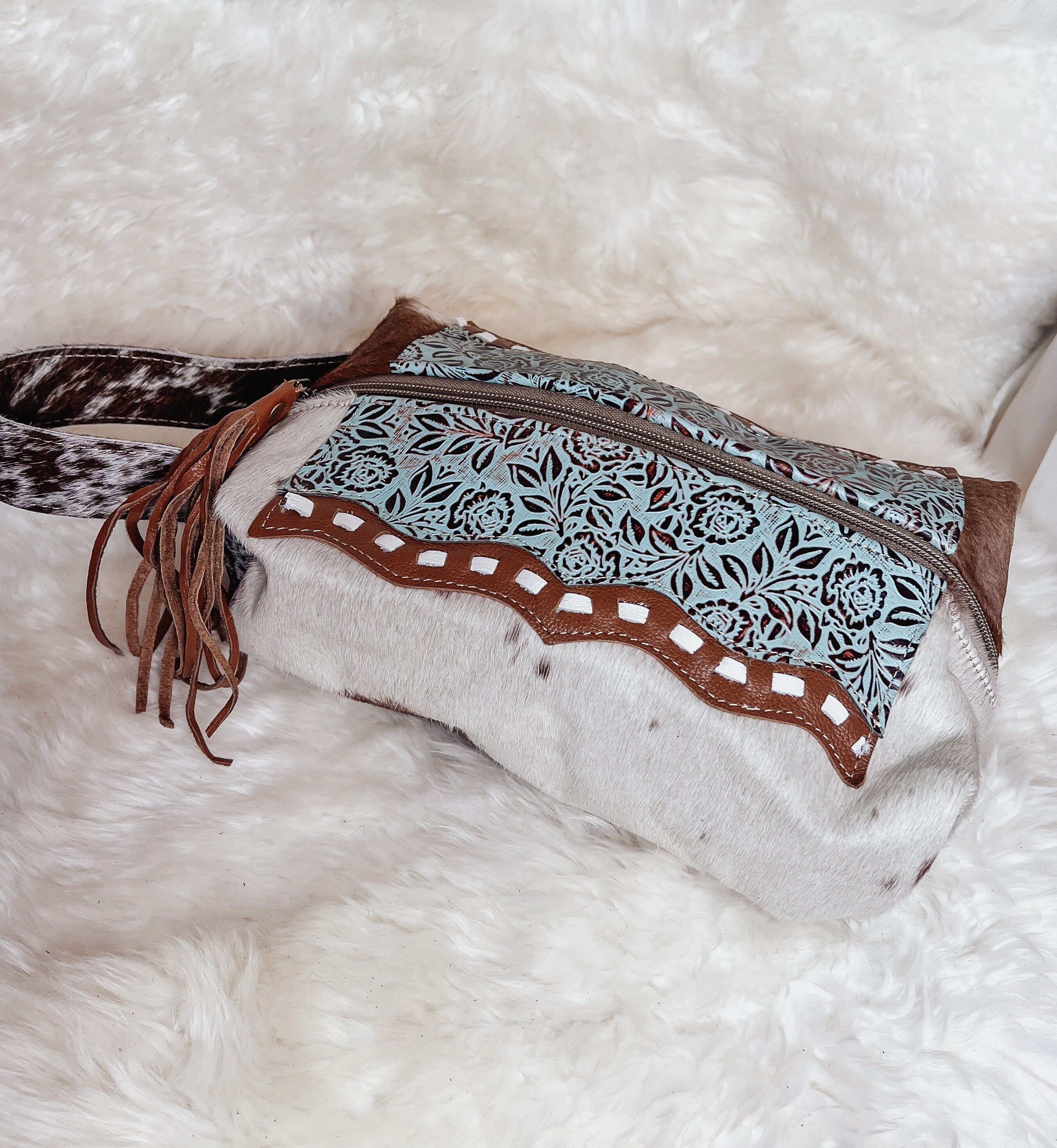 Custom Branded Turquoise and Silver Cowhide Western Crossbody Purse We can Add your Initials Monogram Farm or Cow Brand