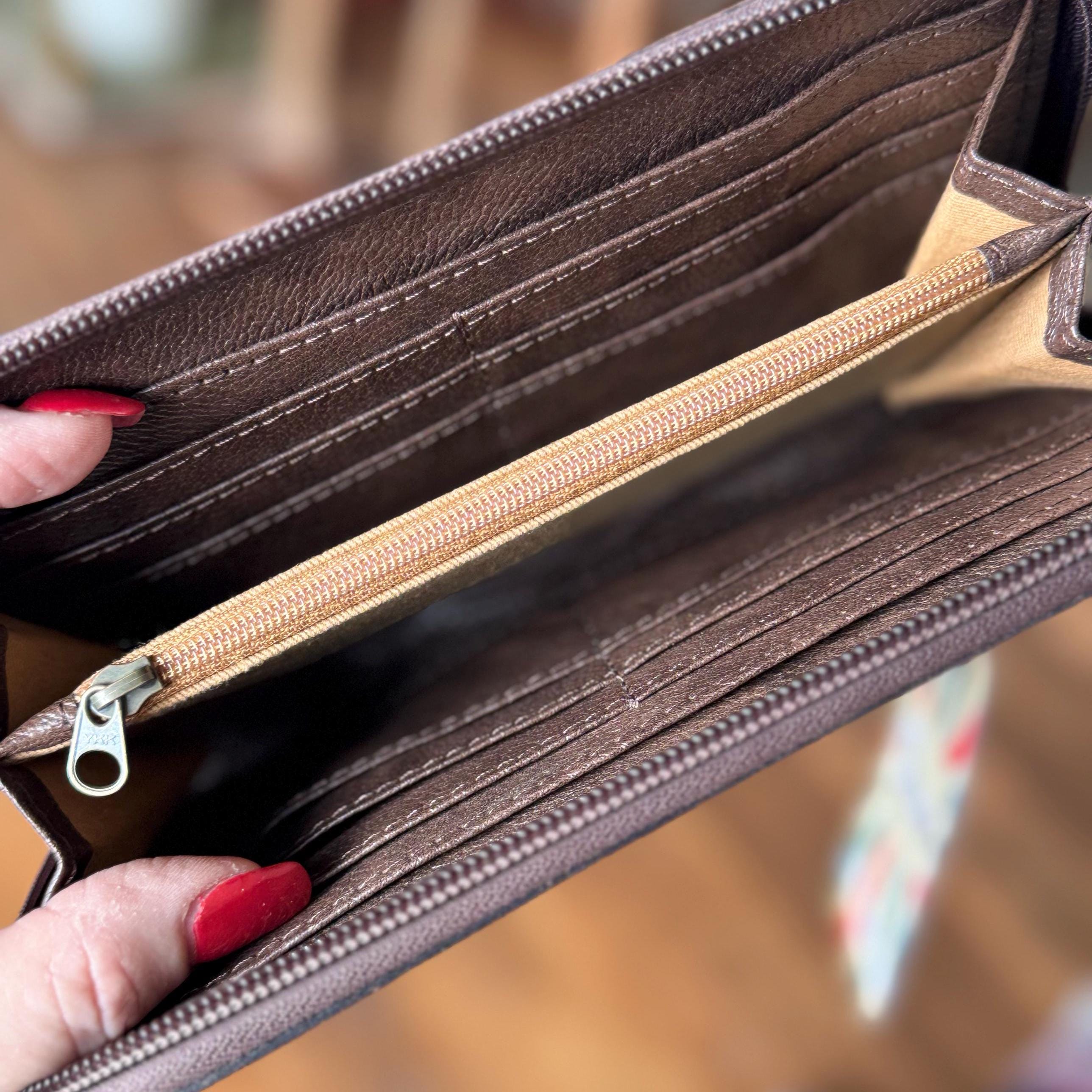 Tooled Leather Women's Zip around Style Wallet Western Wallet With Turquoise Cowgirl Wallet Gifts for Mom