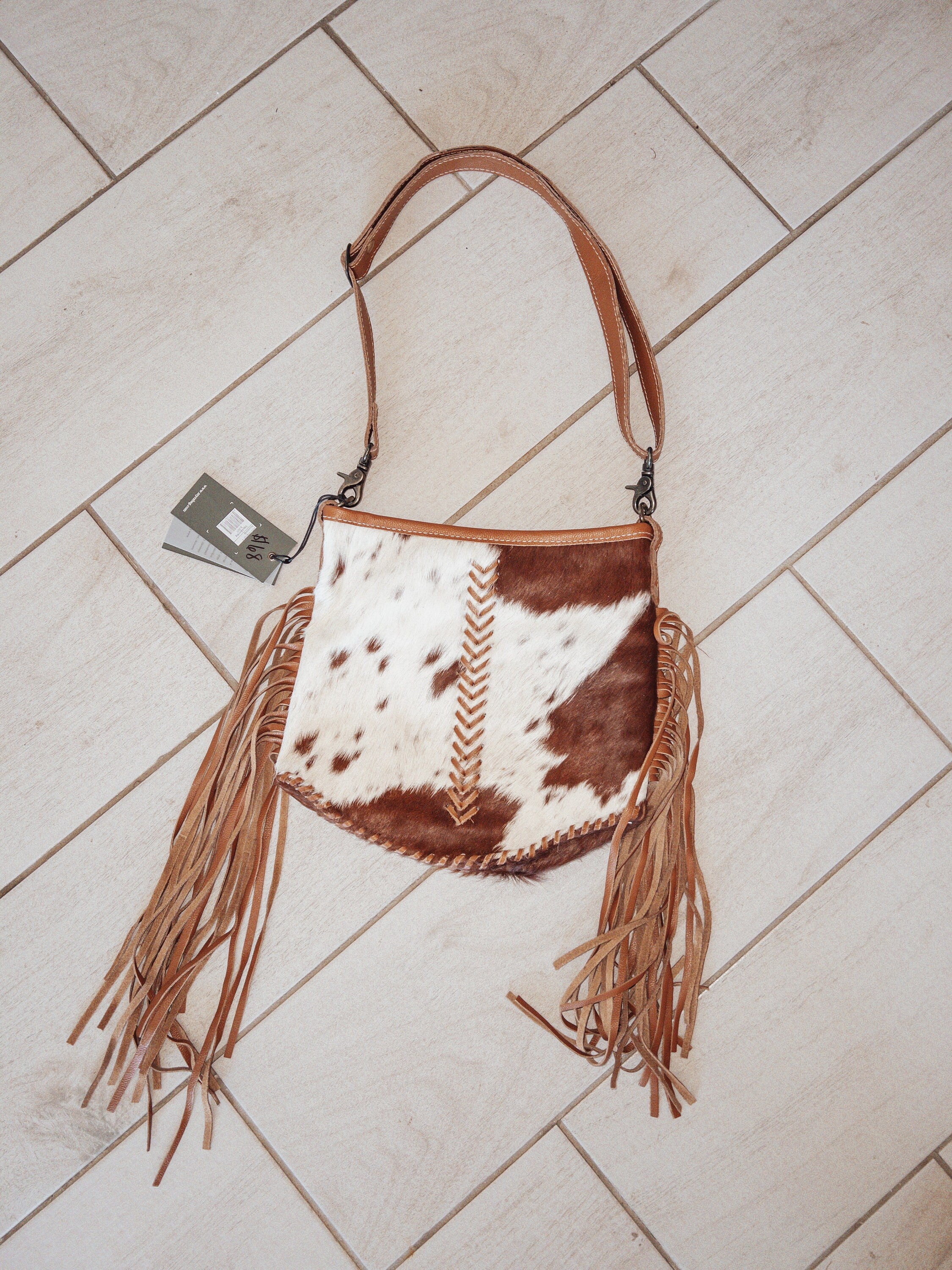 Custom Branded Cowhide Fringe Crossbody Purse Cow Print Gifts for Her