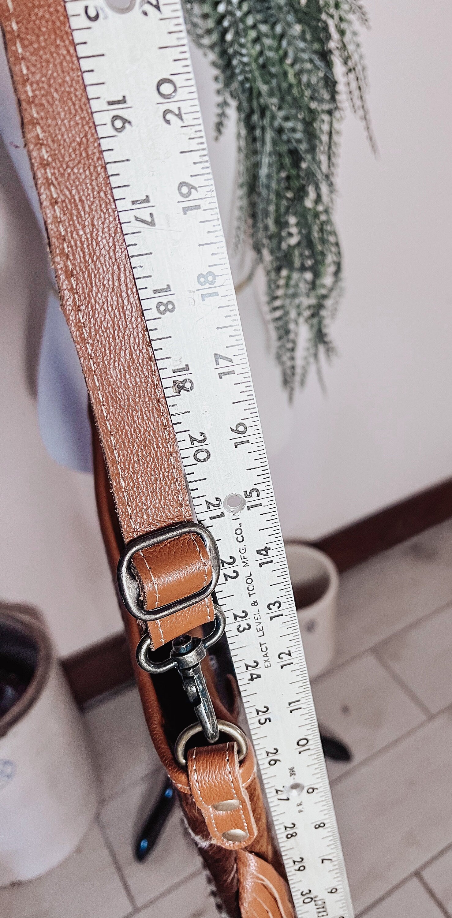Custom Branded Brown and White Cowhide Tooled Leather Sling Bag, Crossbody Bag, Small Purse, Farm Brand, Name, Initials, Personalized Gift