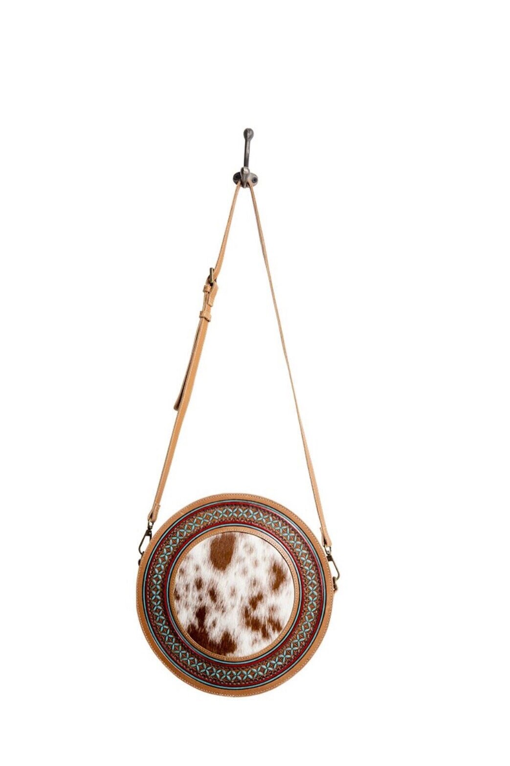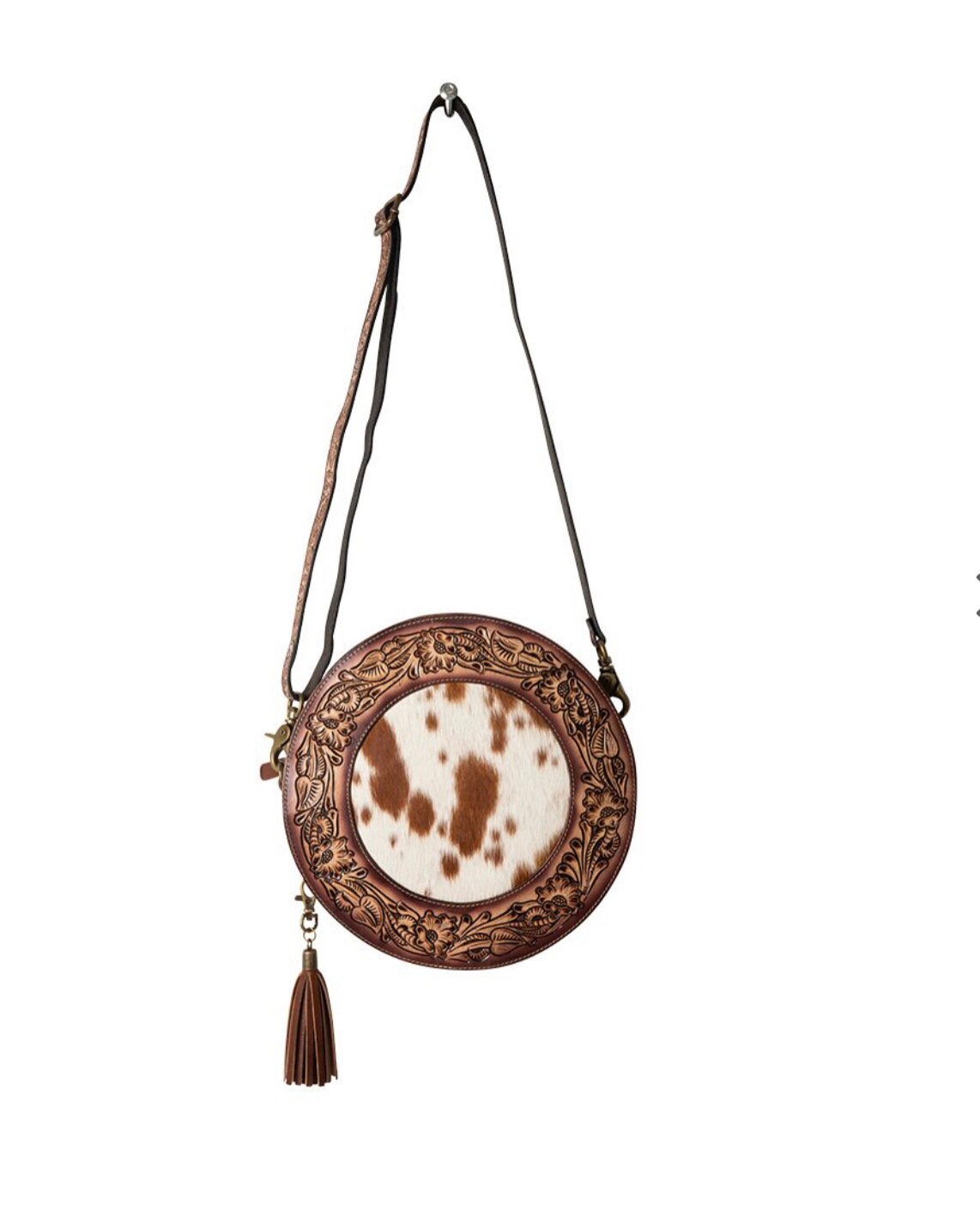 Custom branded cowhide Round Western Tooled Leather Crossbody bag