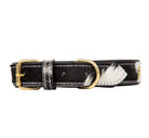 Cowhide and Leather Western Dog Collar Cow Farm Dog Show Dog Black and white or brown and white hide Gold Hardware