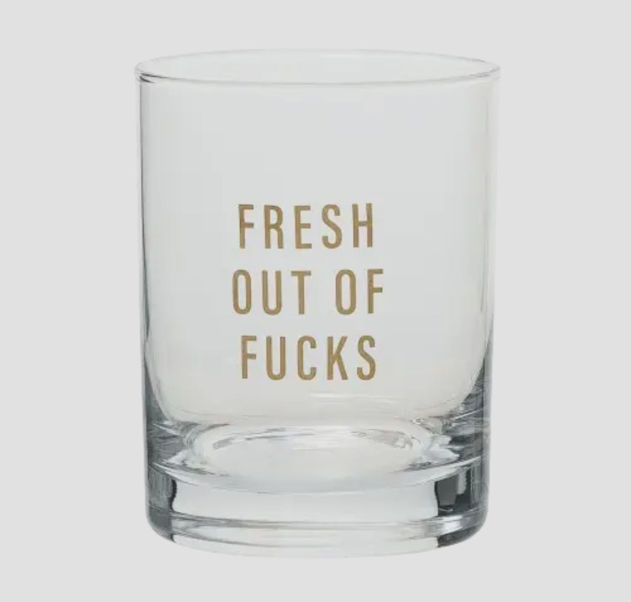 When you've hit your limit and the only thing left to pour is a stiff drink, this "Fresh Out of F*cks" rocks glass gets it. With bold gold lettering and big “done with it” energy, this glass says what you’re thinking—loud and crystal clear.