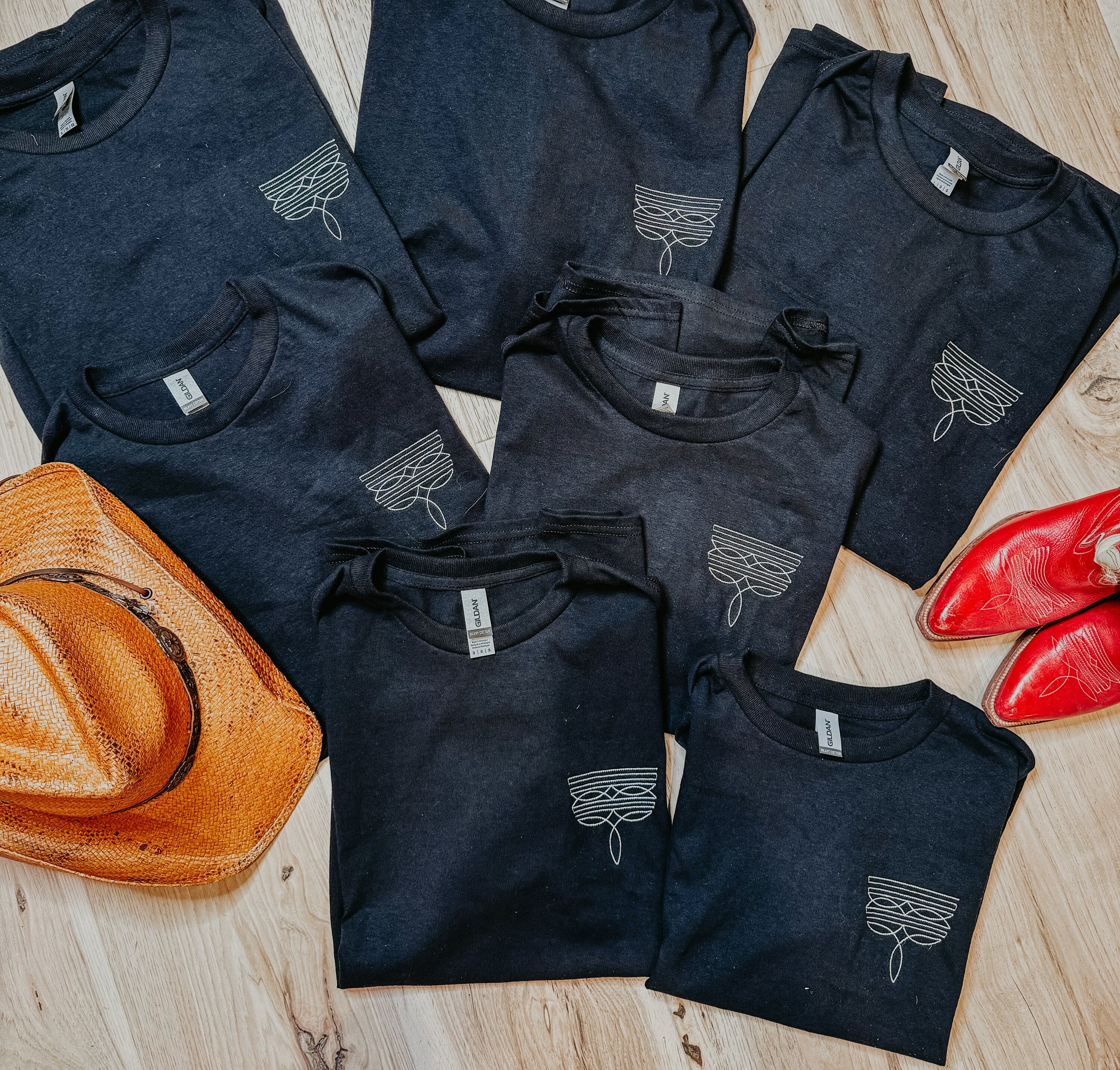 A tee that’s as classic as your favorite pair of boots! This black Gildan Softstyle tee features a white embroidered western boot stitch design over the pocket area, giving it that perfect mix of subtle western charm and everyday comfort.