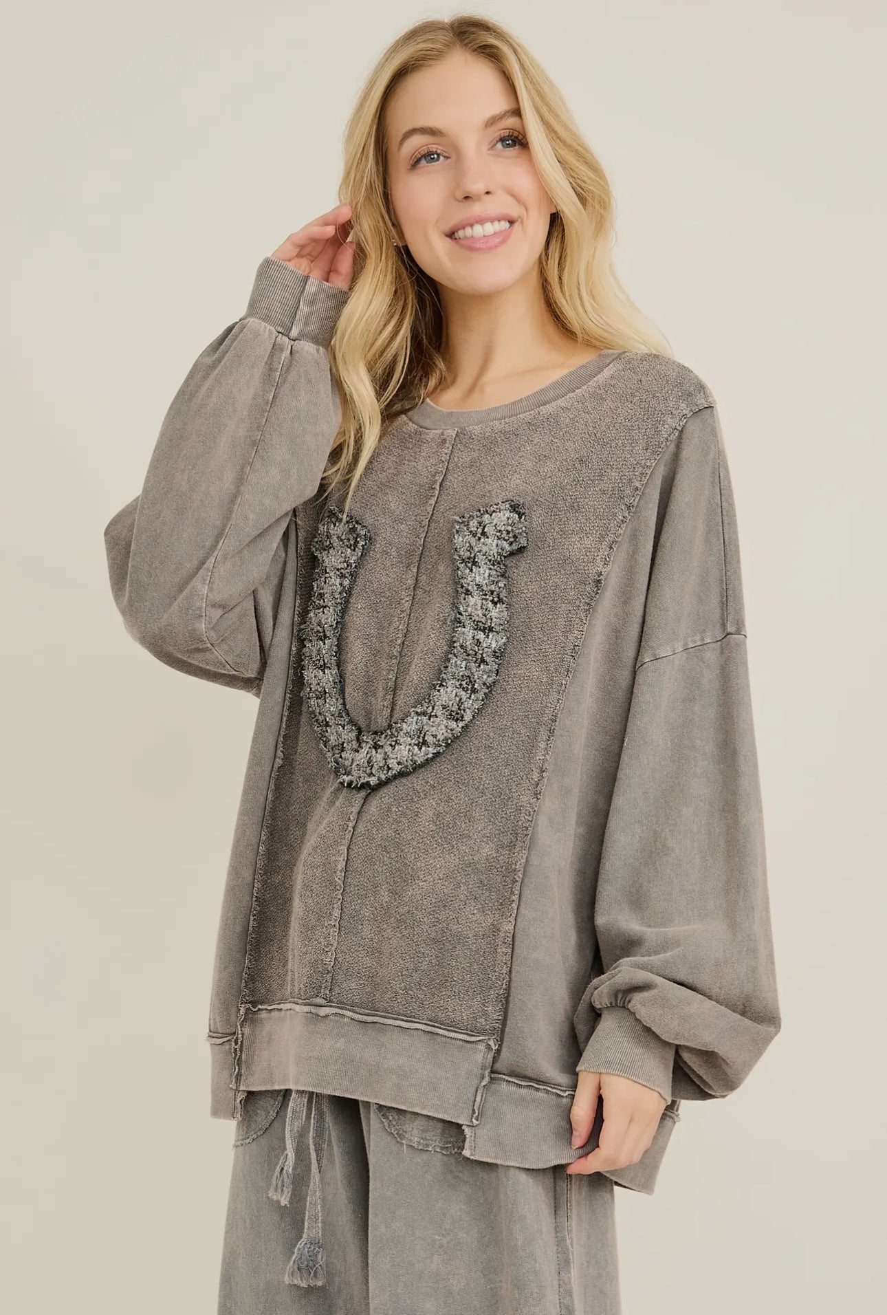 Mineral Washed Horseshoe Crewneck — Small, Medium & Large