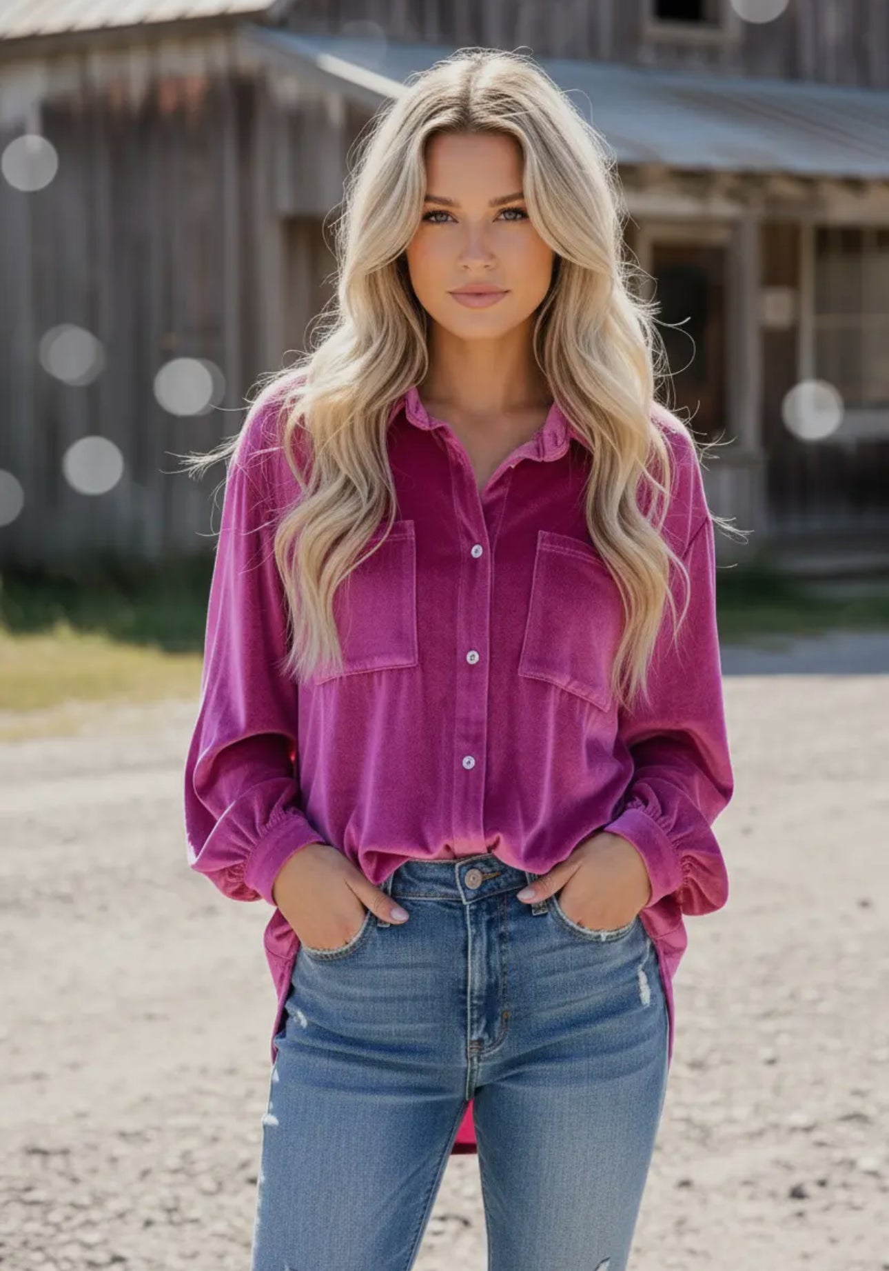 Meet the top that feels like a hug but looks like a whole moment. The Velvet Crush Button-Down is crafted from soft, medium-weight velvet with a subtle sheen that catches the light just right—luxurious without tryin’ too hard.